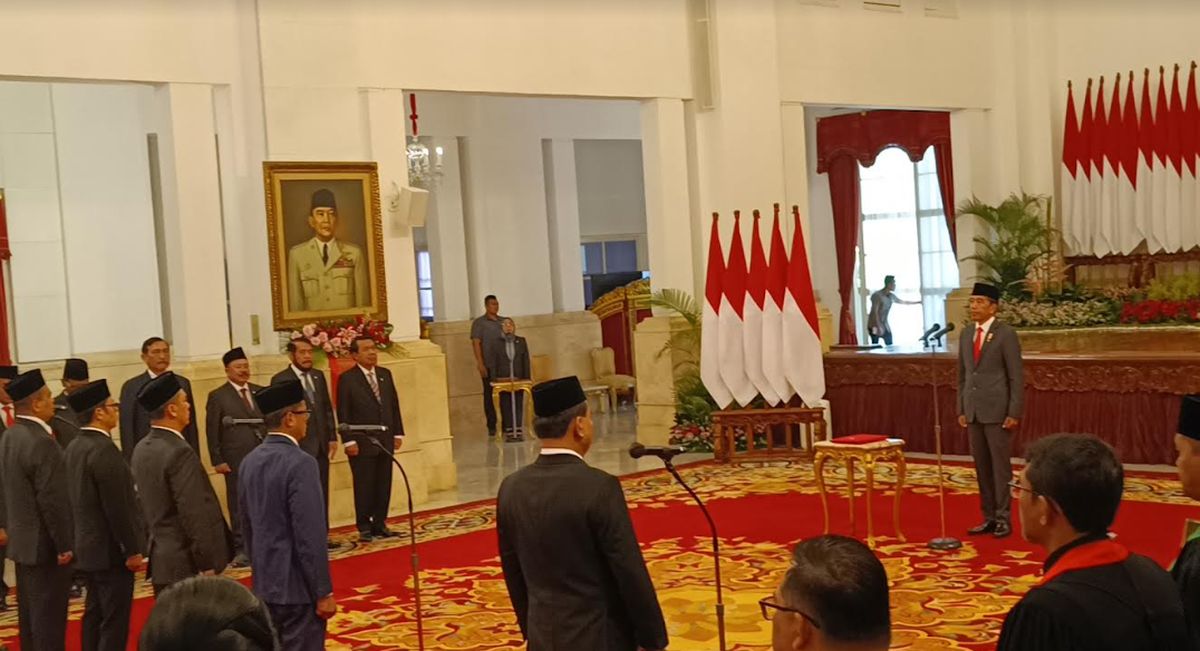 Delapan pejabat baru pilihan Presiden Jokowi telah dilantik di Istana Presiden, pada Senin 17 Juli 2023.