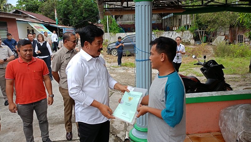 Hadi Tjahjanto menyerahkan 63 sertifikat Pendaftaran Tanah Sistematis Lengkap (PTSL) secara door to door